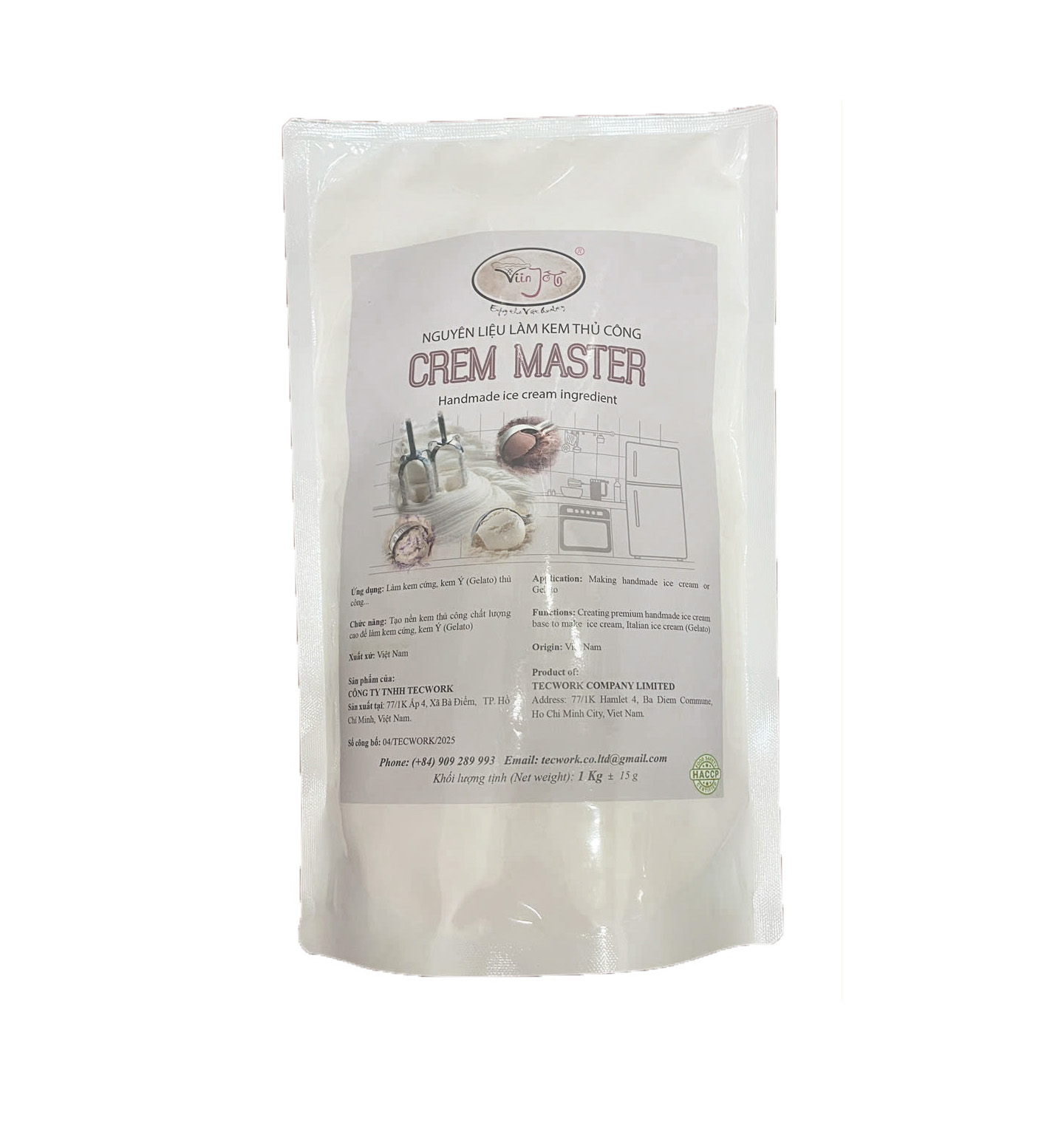 -Nguyên liệu làm kem thủ công CREM MASTER là bột nền kem cấu trúc kem chuyên dụng dành cho việc làm kem khi không có máy kem.
